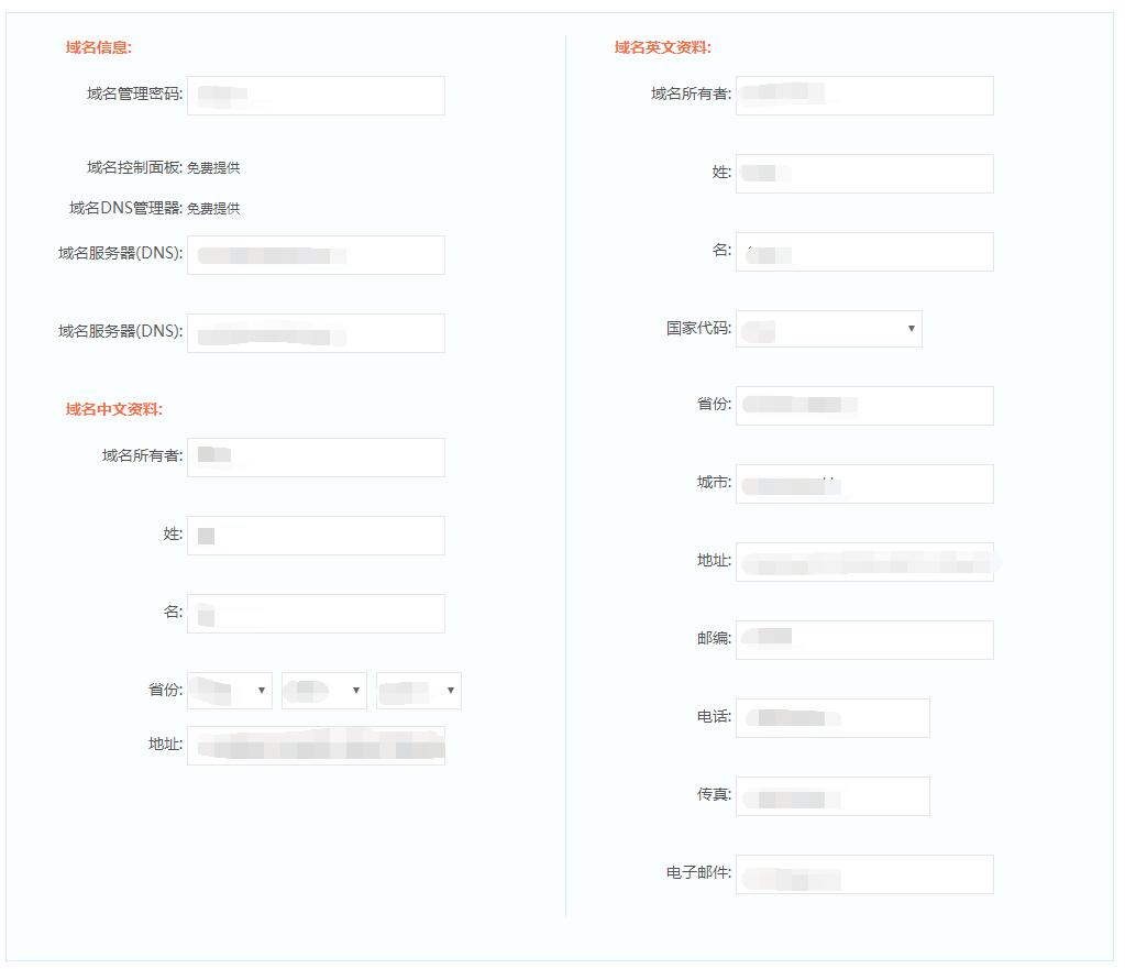 填写域名注册信息 查询到未被注册的域名之后,就可以点击“进入下一步”进入域名注册提交。 对将域名添加到购物车结算之前,需要先填写完成域名注册信息。 域名注册信息主要包括域名所有者的姓名、联系电话、传真、地址、电子邮件等中、英文信息。