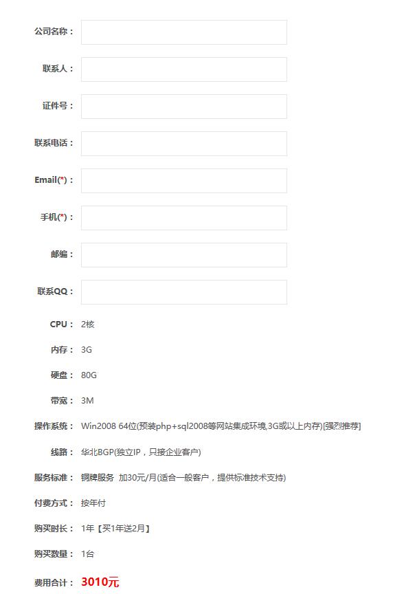 二、确认订单。点击购买这个配置之后会来到订单确认页面,请检查订单中的各项参数是否正确,确认无误后点击确认提交。
